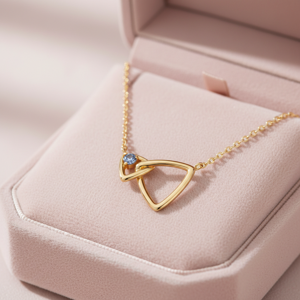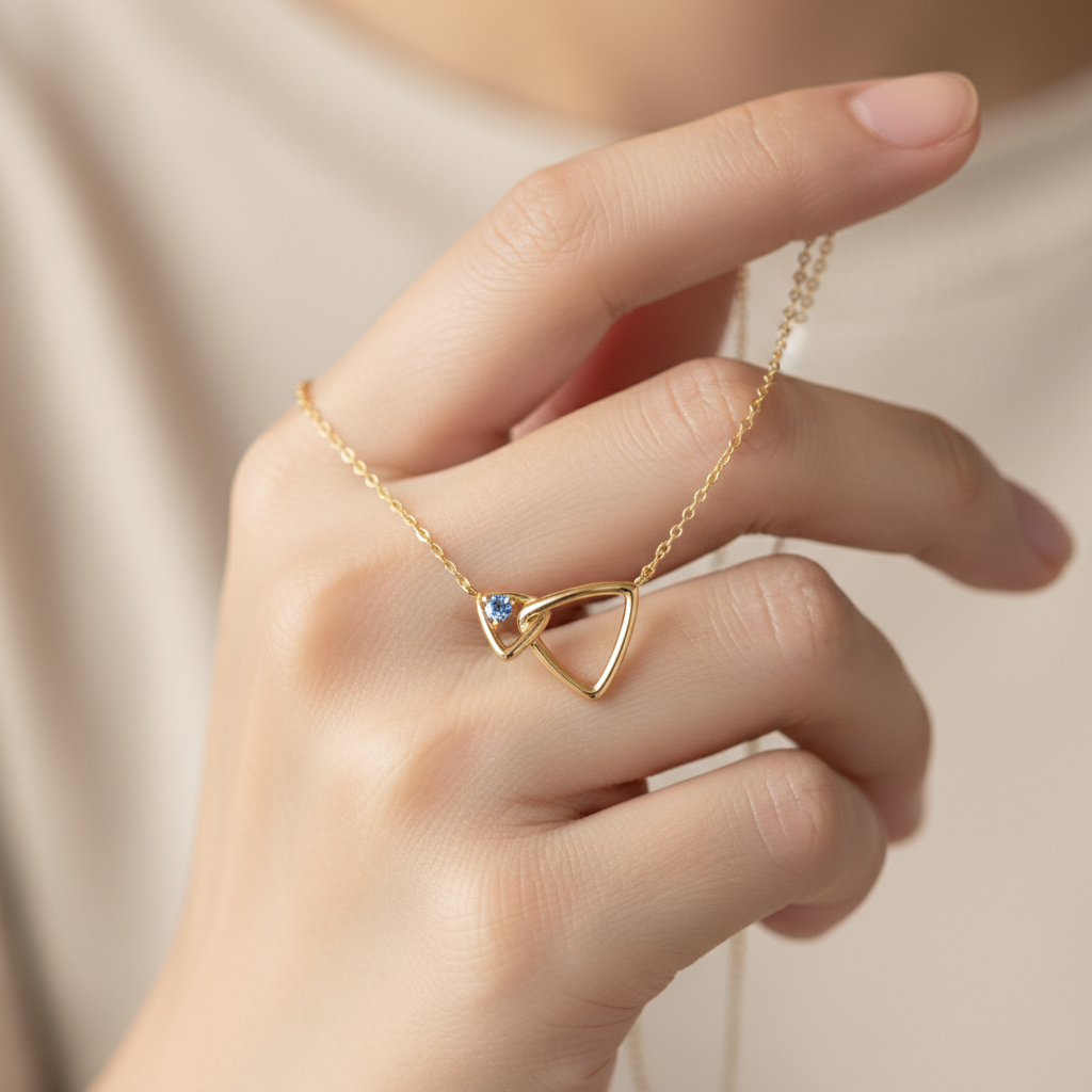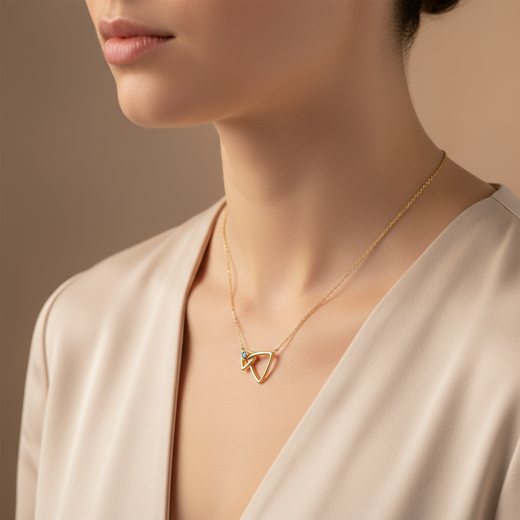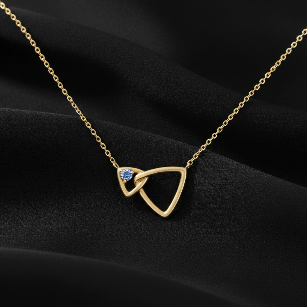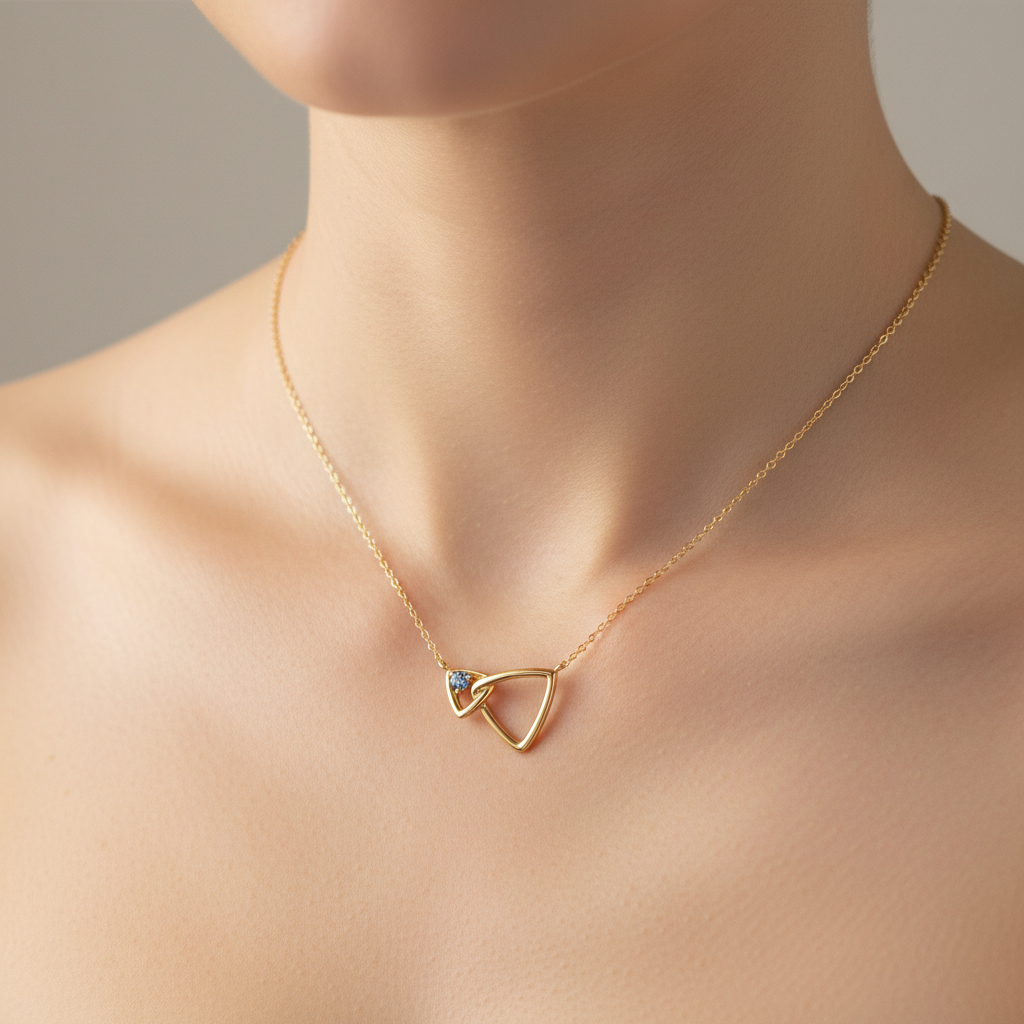 The Eternal Bond Triangle Lab Grown Diamond Necklace is a refined expression of strength, balance, and lasting connection. Designed with sleek geometric lines, the interlocking triangle form represents unity and timeless bonds making it a meaningful piece with contemporary sophistication.