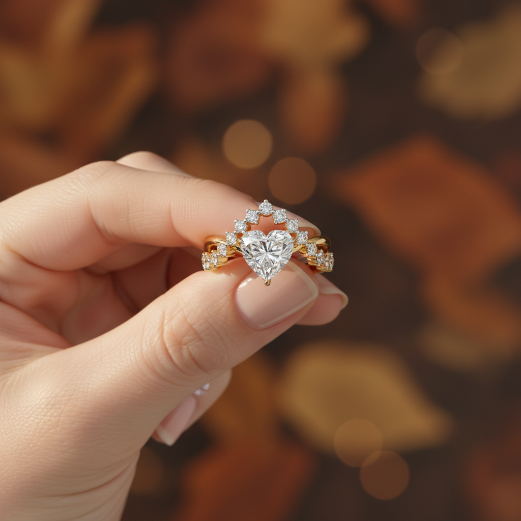 Fall in love with enduring brilliance through this elegant Heart Cut Moissanite Ring by Yana Jewels. Featuring a stunning 1.50 carat heart-shaped moissanite center stone, this design radiates exceptional fire and clarity, beautifully matched with VVS-grade colorless brilliance.