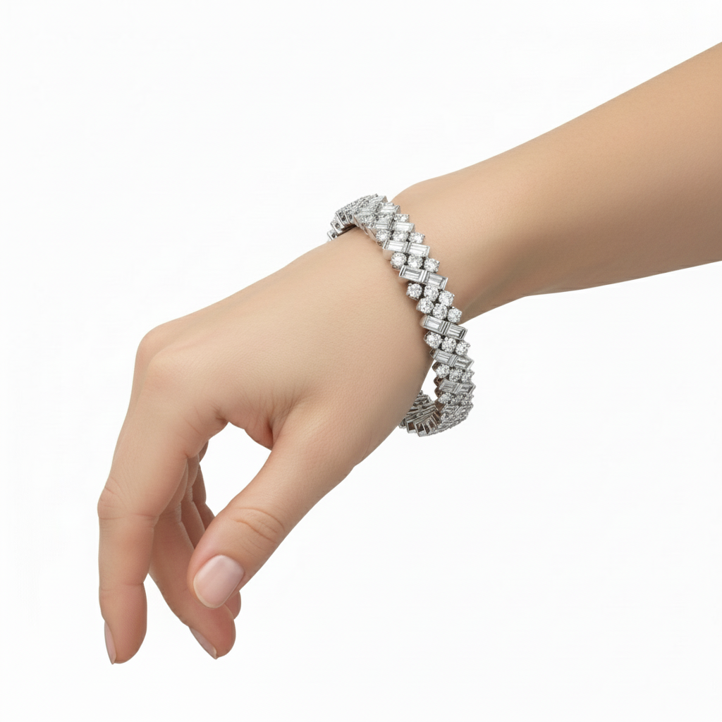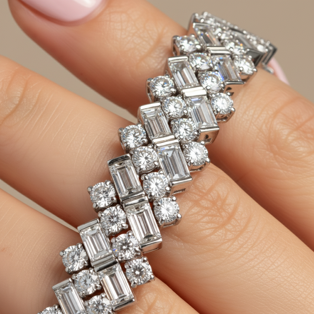 Luxury Baguette & Round Cut Moissanite Diamond Tennis Bracelet