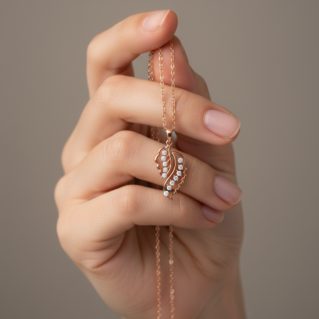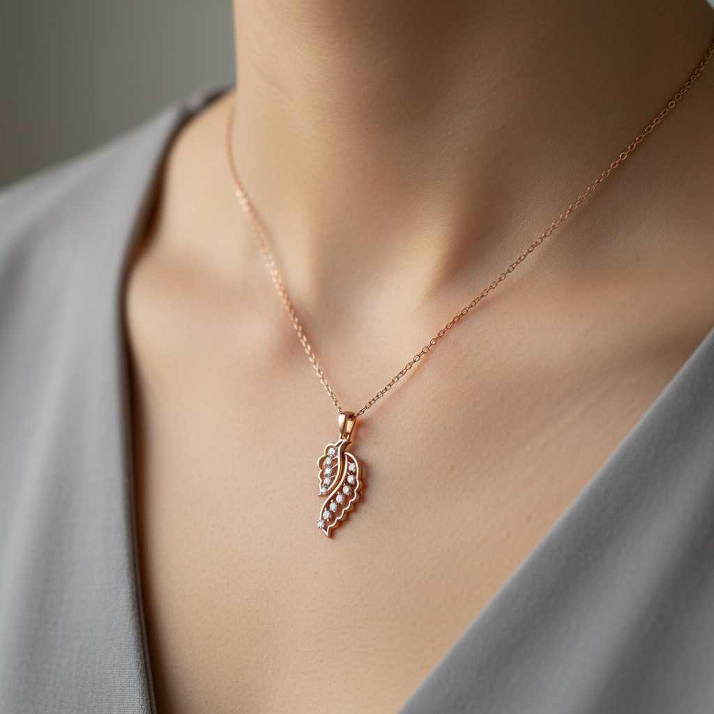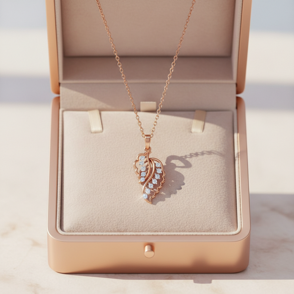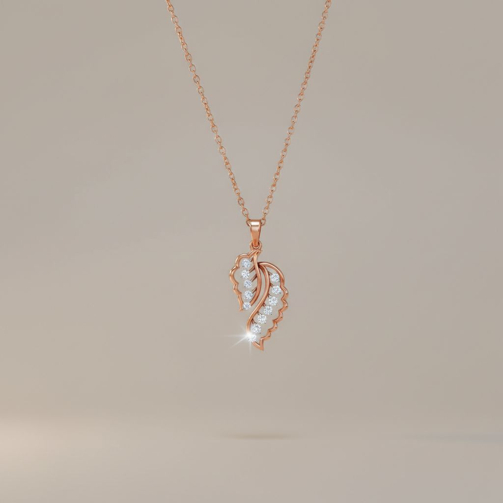 Inspired by the graceful beauty of nature, the Luxury Sparkling Leaf Moissanite Pendant captures elegance in its most refined form. Designed for the modern woman who values sophistication with meaning, this pendant features a delicately sculpted leaf silhouette adorned with a brilliant round cut moissanite stone that radiates exceptional fire and clarity.