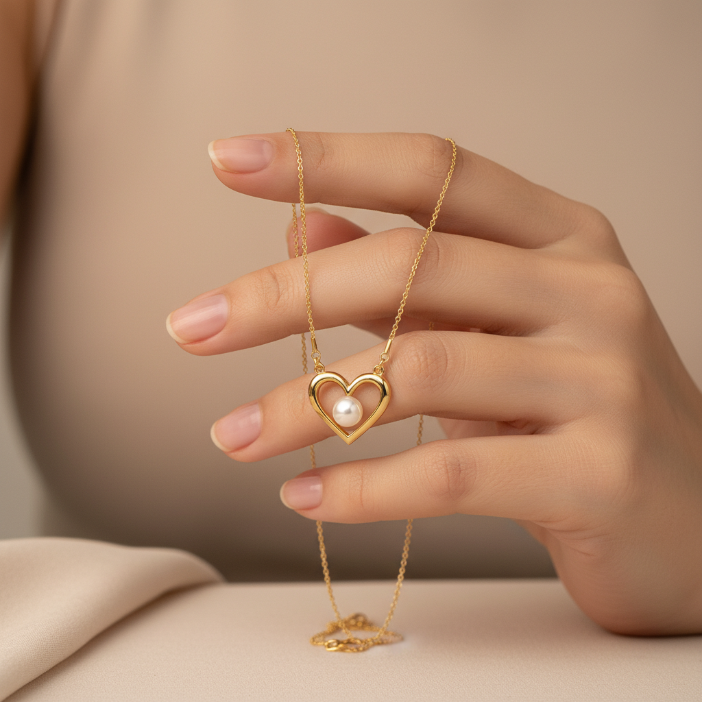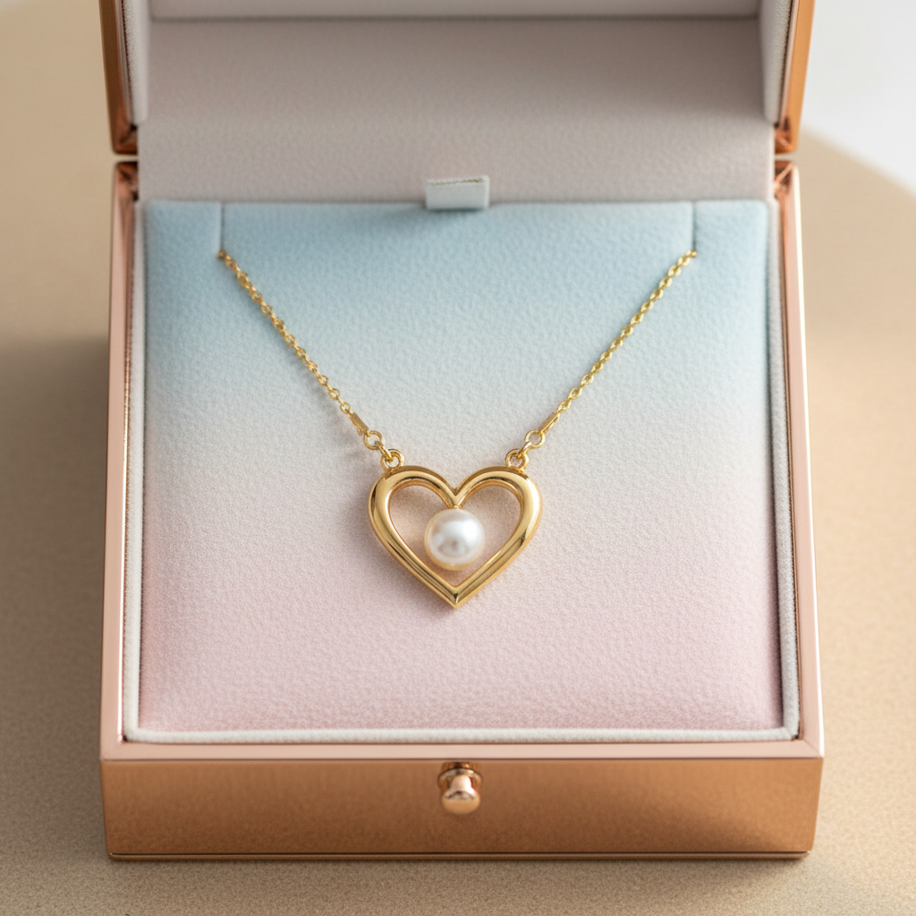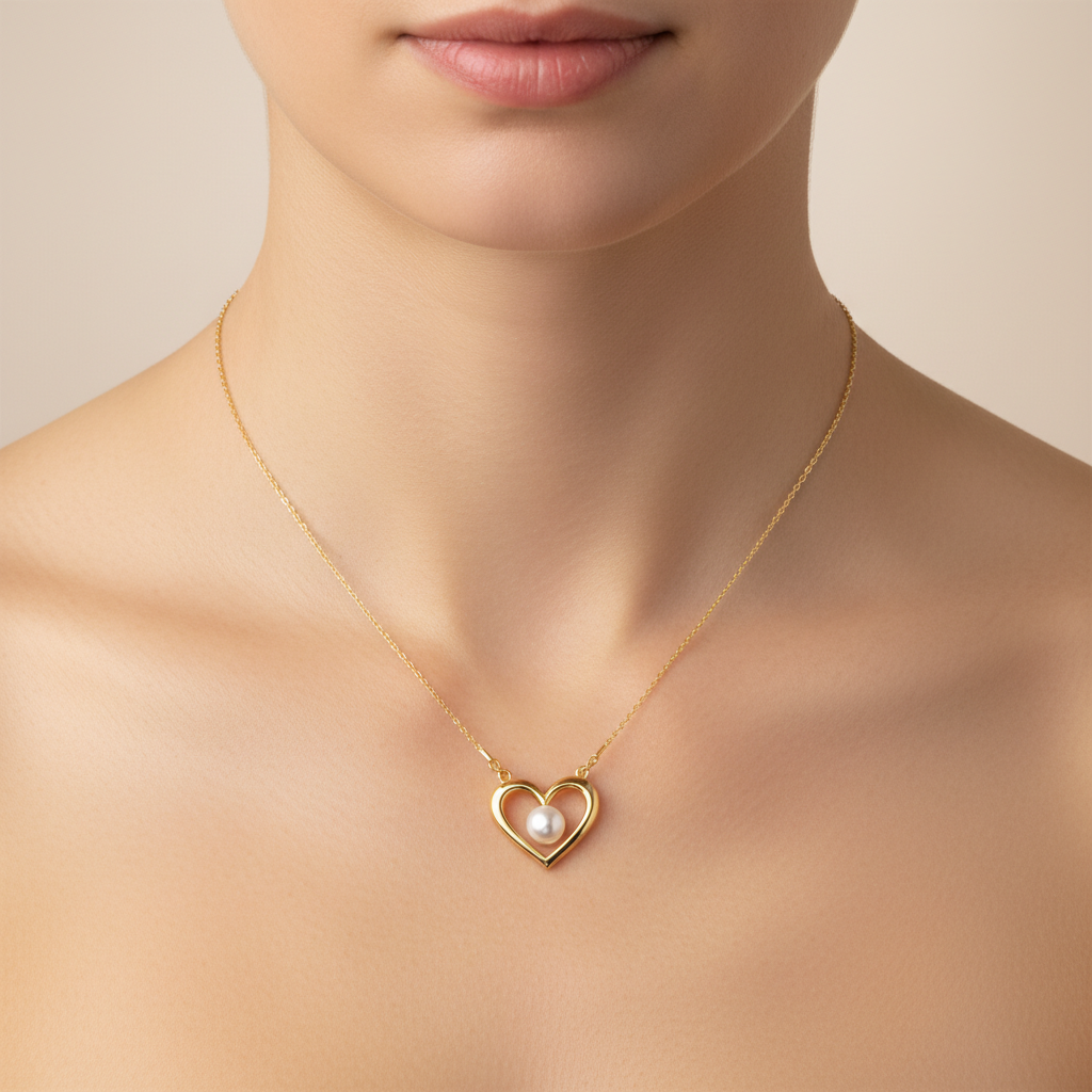 The Romantic Gold Heart Pearl & Diamond Necklace captures the essence of love in its most elegant form. A glowing pearl rests at the center of a graceful gold heart, symbolizing purity, affection, and enduring connection. This timeless silhouette is both delicate and powerful designed for the woman who treasures meaningful luxury.