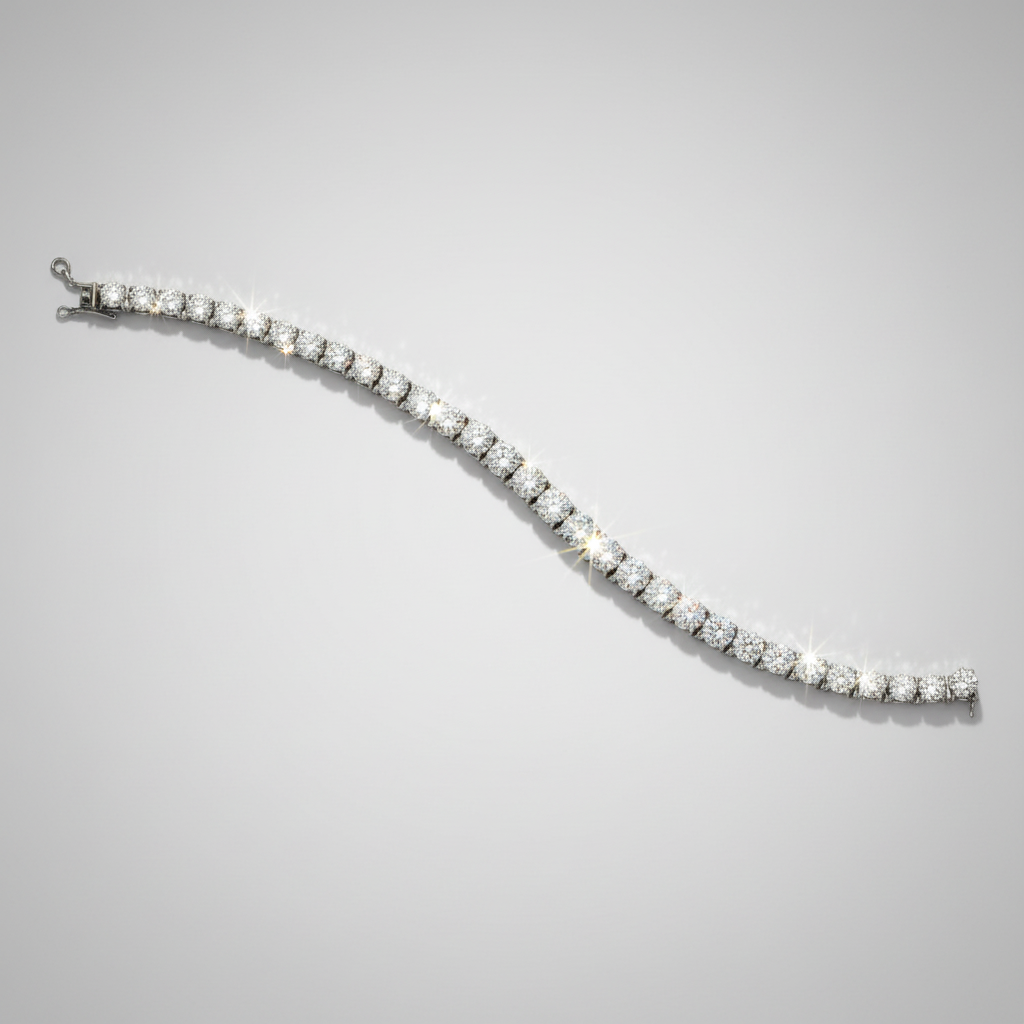 Crafted with approximately 0.10 CT moissanite per stone, the design offers perfectly balanced radiance and fluid movement around the wrist. Moissanite is prized for its extraordinary durability and diamond-like appearance, making this bracelet an ideal choice for everyday elegance without compromise.