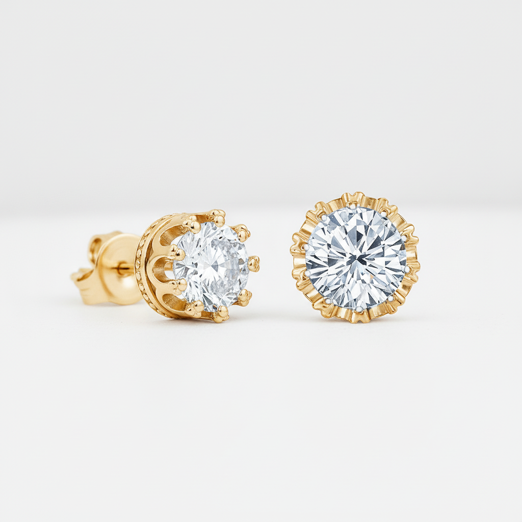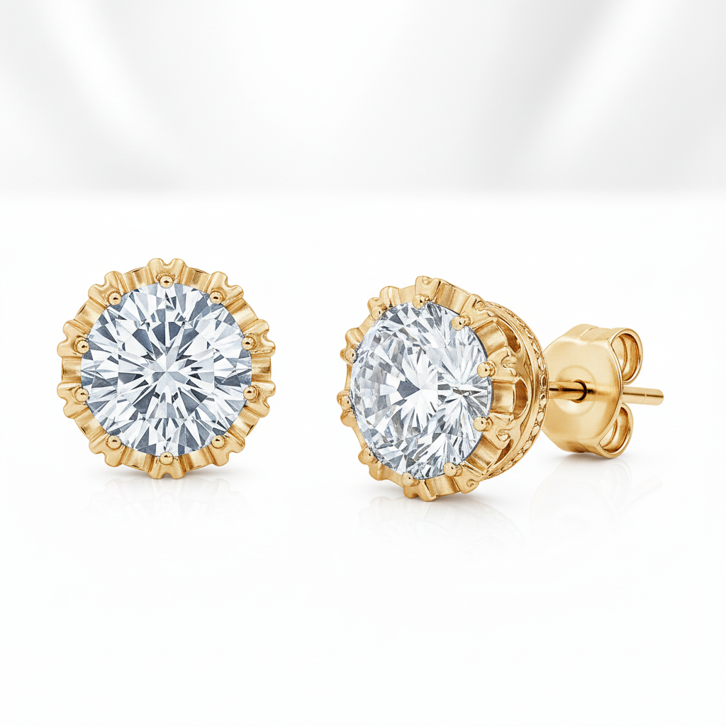 Illuminate your style with the Royal Sunburst Frame Diamond Stud Earrings from Yana Jewels where timeless craftsmanship meets modern luxury. At the center of each earring sits a breathtaking 2.00 CT round cut lab grown diamond, expertly cut to deliver exceptional brilliance, fire, and clarity.