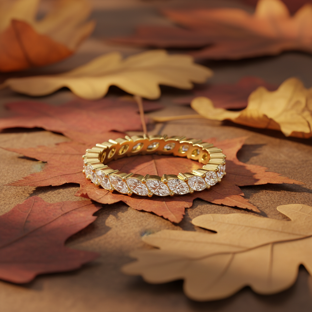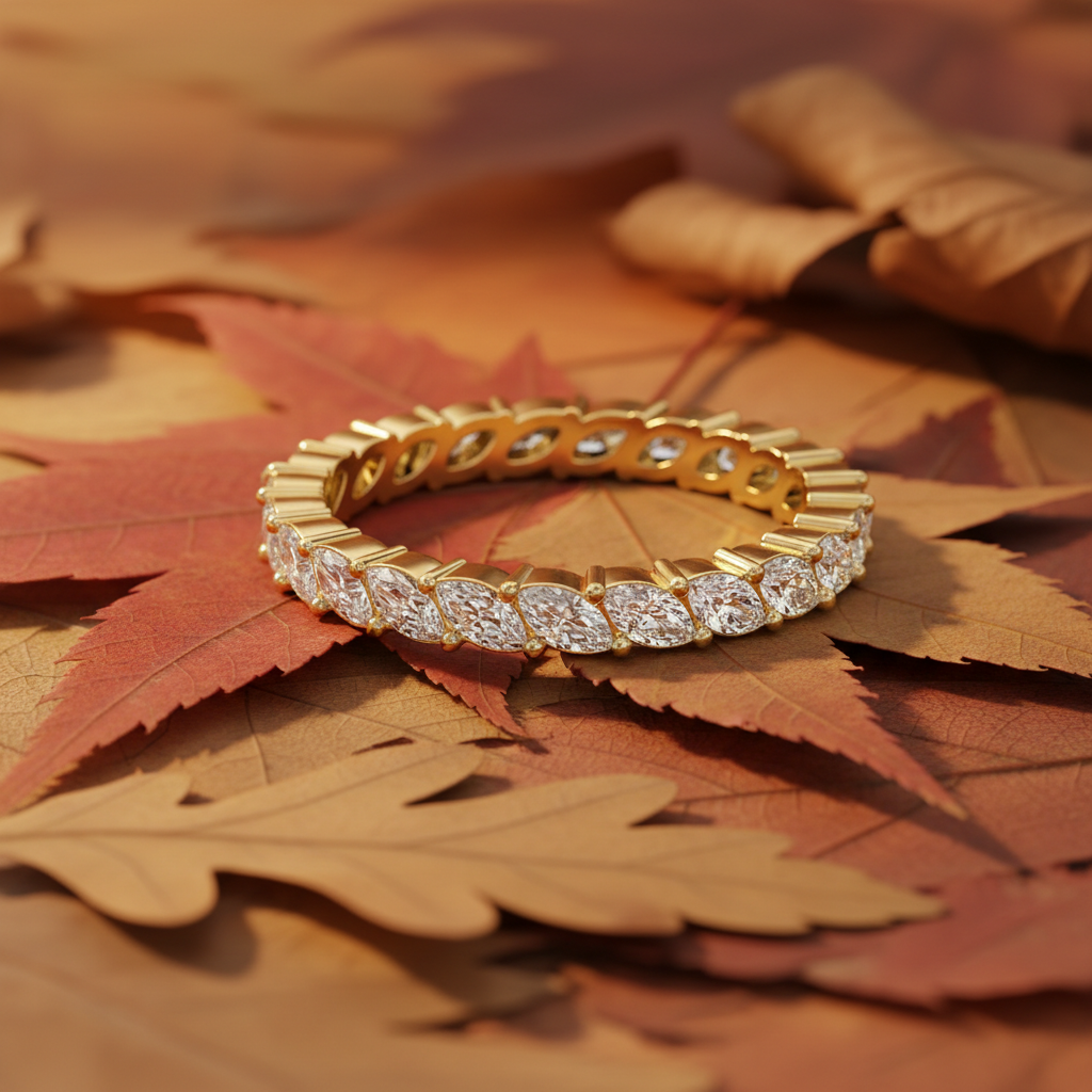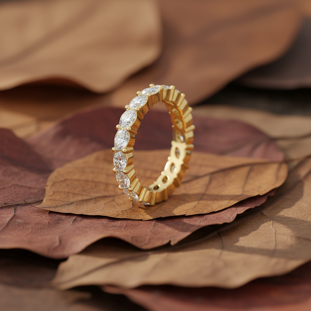Crown Line Marquise Moissanite Eternity Diamond Band