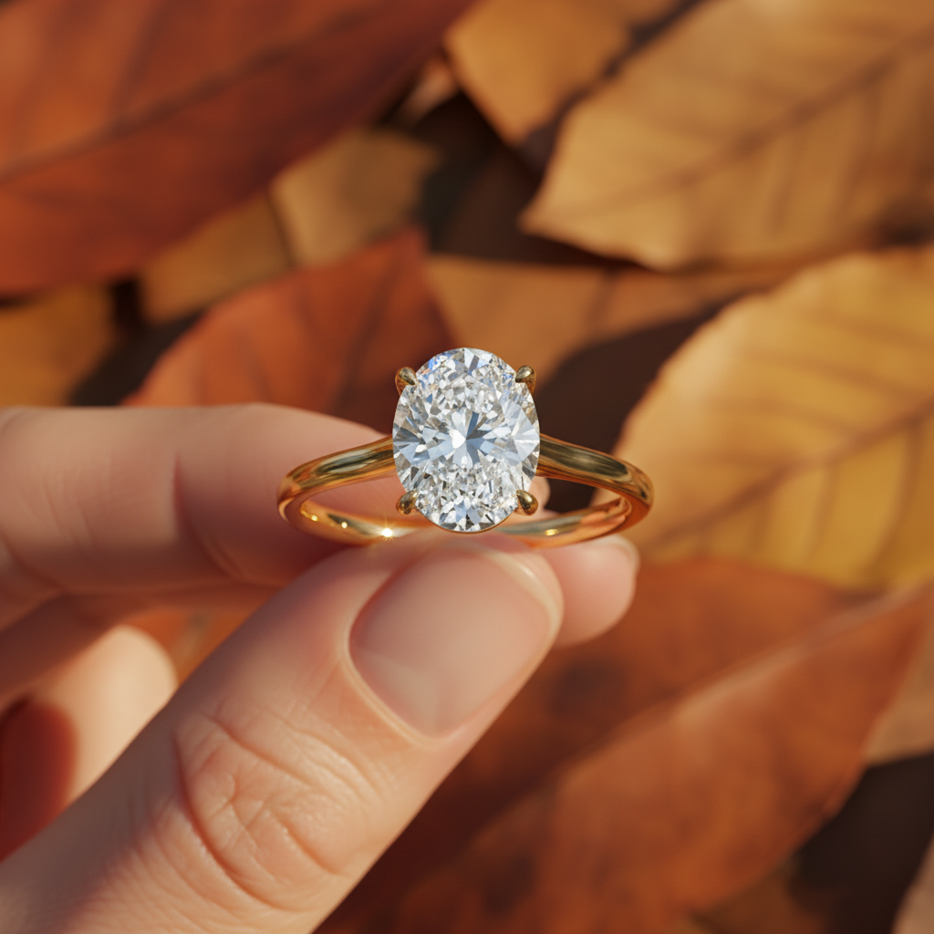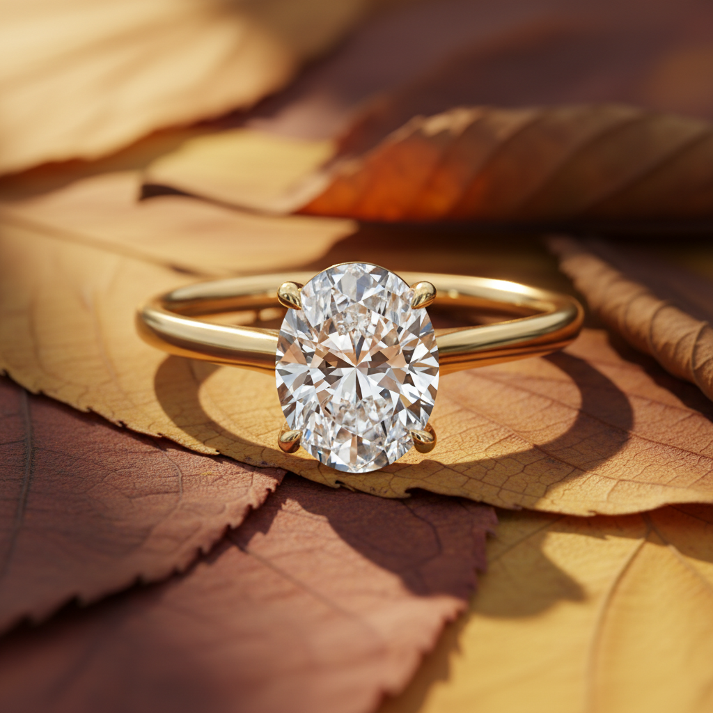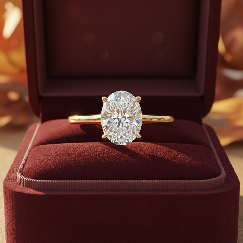 The elongated oval silhouette enhances finger length and radiates a soft, romantic glow perfect for those who love an elegant yet commanding centerpiece. The handcrafted 4-claw prong setting holds the moissanite securely while maximizing light reflection, allowing every facet to shine with fiery brilliance.