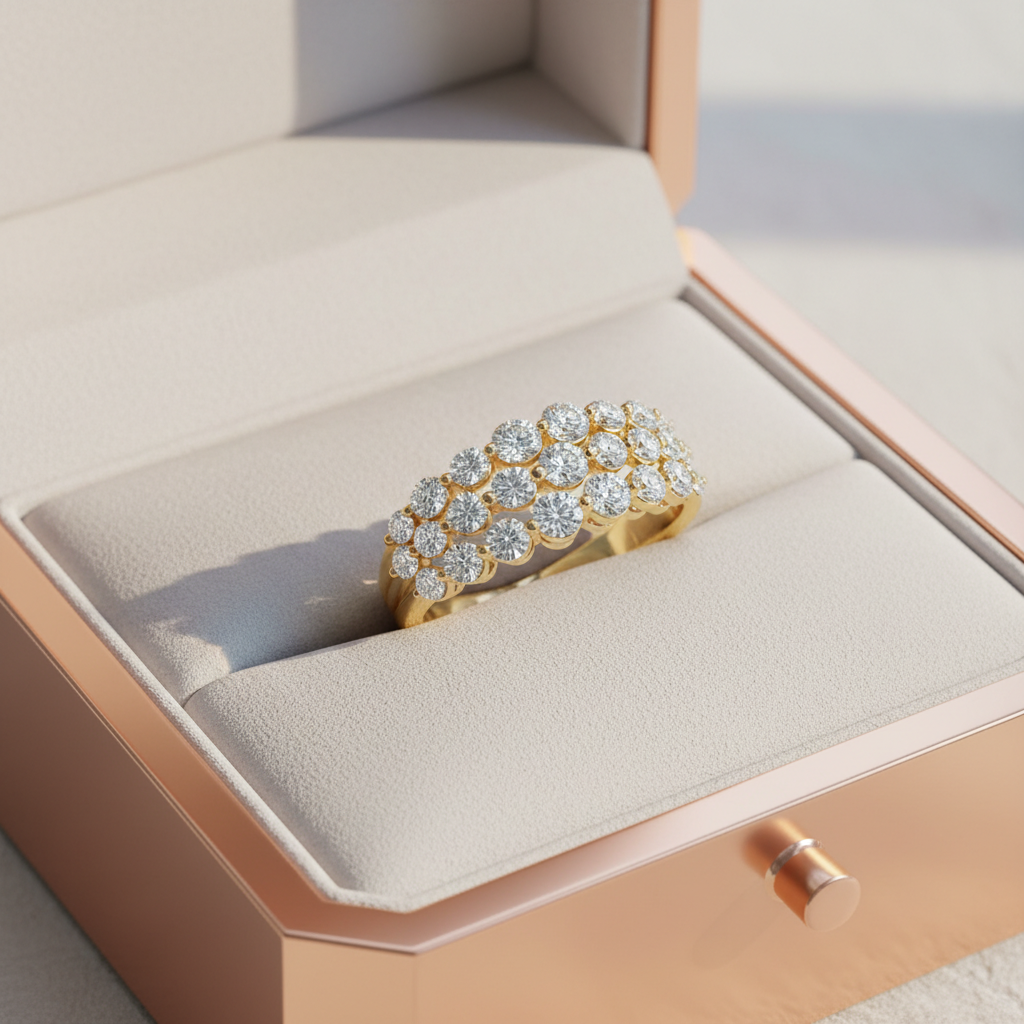 Designed for the modern USA luxury jewelry lover, Aurevia offers ethical brilliance without compromise. Its abundant sparkle and sophisticated silhouette make it a breathtaking anniversary ring, wedding band, or signature statement of success and devotion. A timeless expression of radiance, confidence, and elevated style.