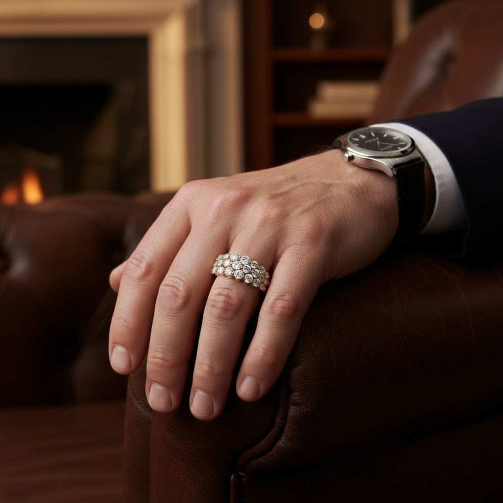 Each VVS moissanite is expertly precision-set to maximize light performance while ensuring lasting durability for everyday luxury wear. The softly contoured band structure enhances comfort and fluid elegance, allowing the ring to feel as extraordinary as it appears. Its radiant surface captures and reflects light from every angle, delivering unmistakable presence.