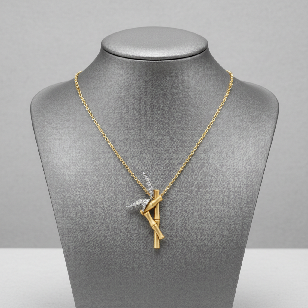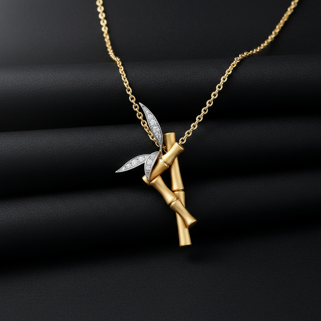 The dimensional bamboo design blends sculptural artistry with refined craftsmanship, creating a pendant that feels both modern and timeless. Its nature-inspired silhouette carries deep symbolism growth, resilience, and harmony making it a meaningful piece for personal expression or thoughtful gifting.