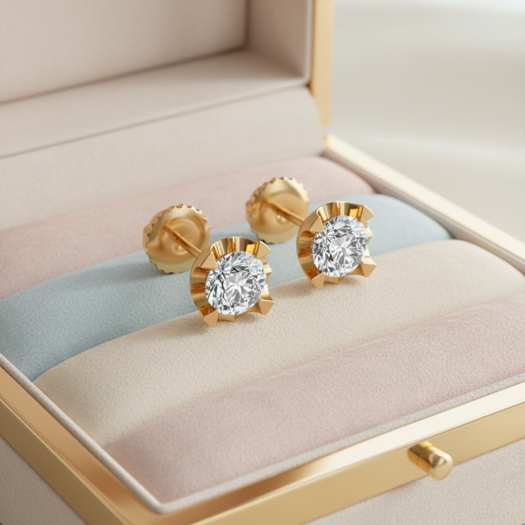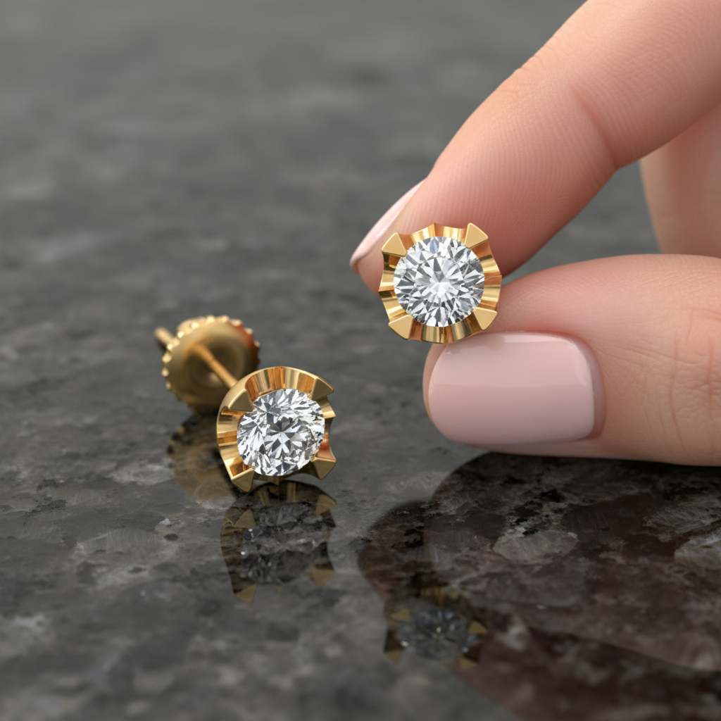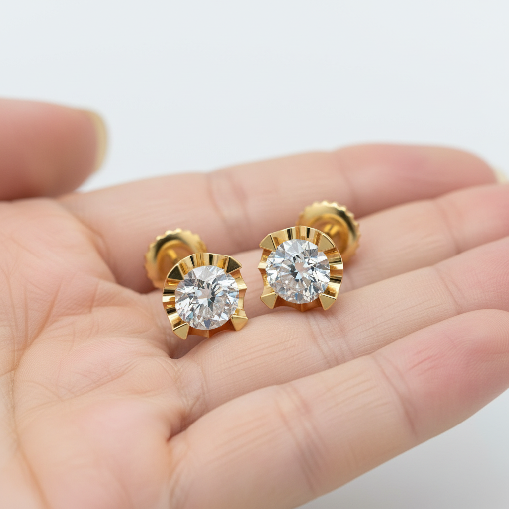 Expertly set in premium gold, these earrings reflect superior craftsmanship and long-lasting quality. Whether worn as a signature everyday piece or styled for special occasions, they bring confidence, brilliance, and sophistication to every moment.