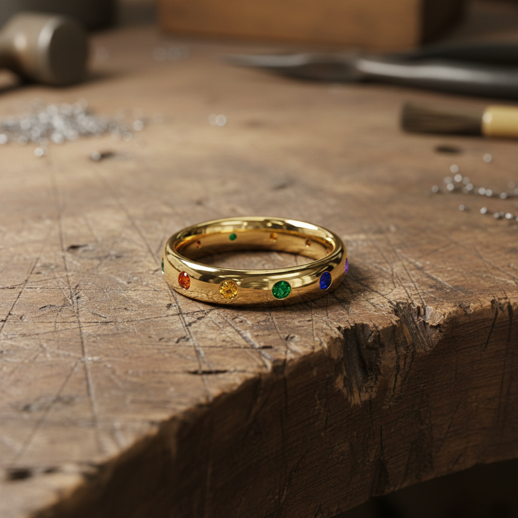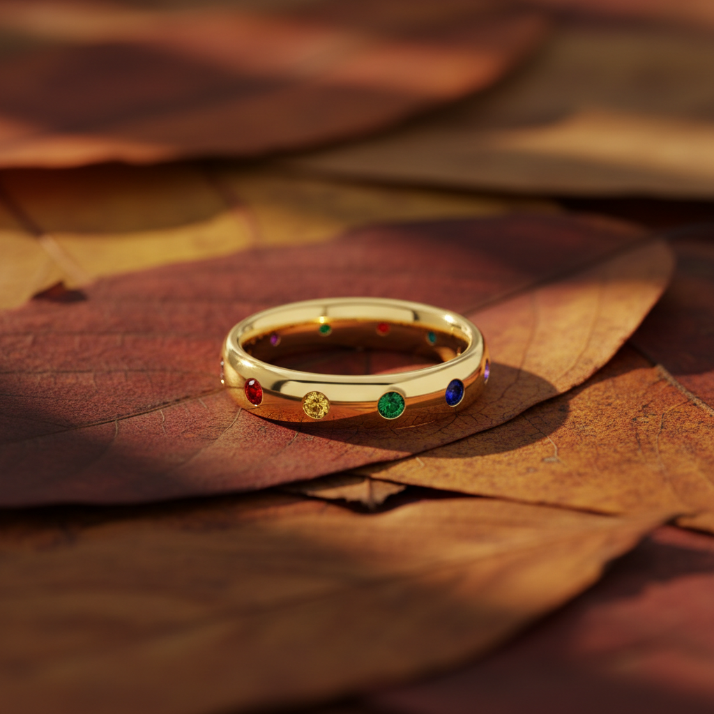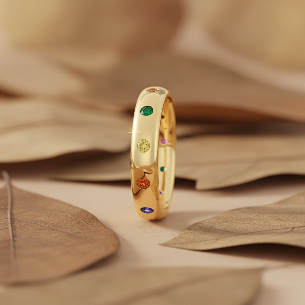 Colorful Moissanite Gemstone Gold Ring
