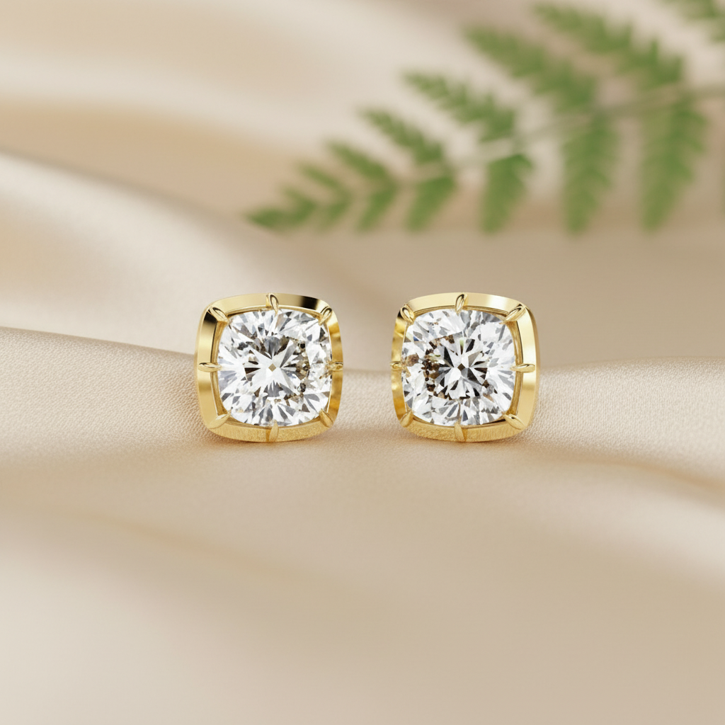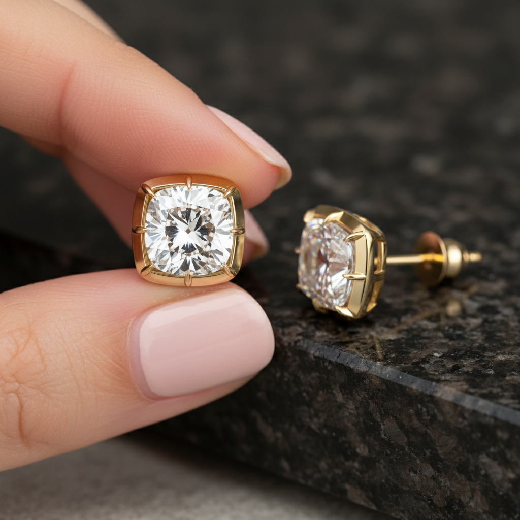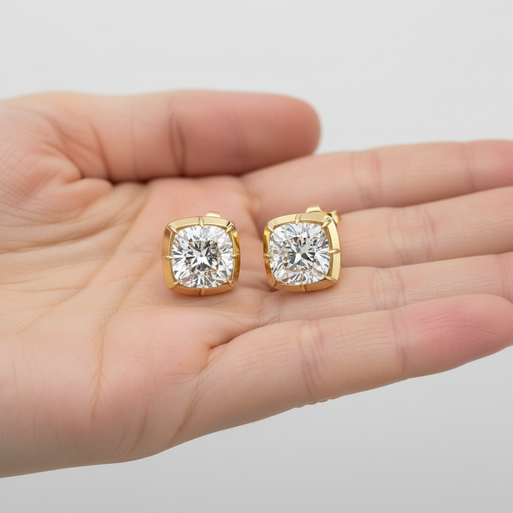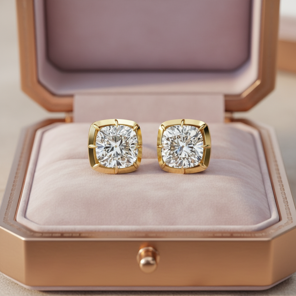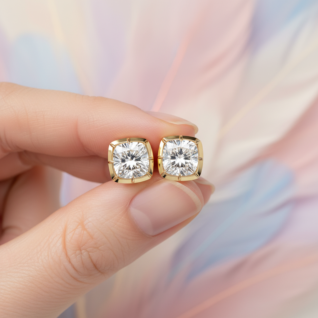 Discover refined brilliance with these Cushion Cut Moissanite Stud Earrings, masterfully designed for those who appreciate bold elegance and timeless luxury. Featuring 2.00 CT total weight of colorless VVS clarity moissanite, each stone radiates exceptional fire and brilliance that rivals the finest diamonds.