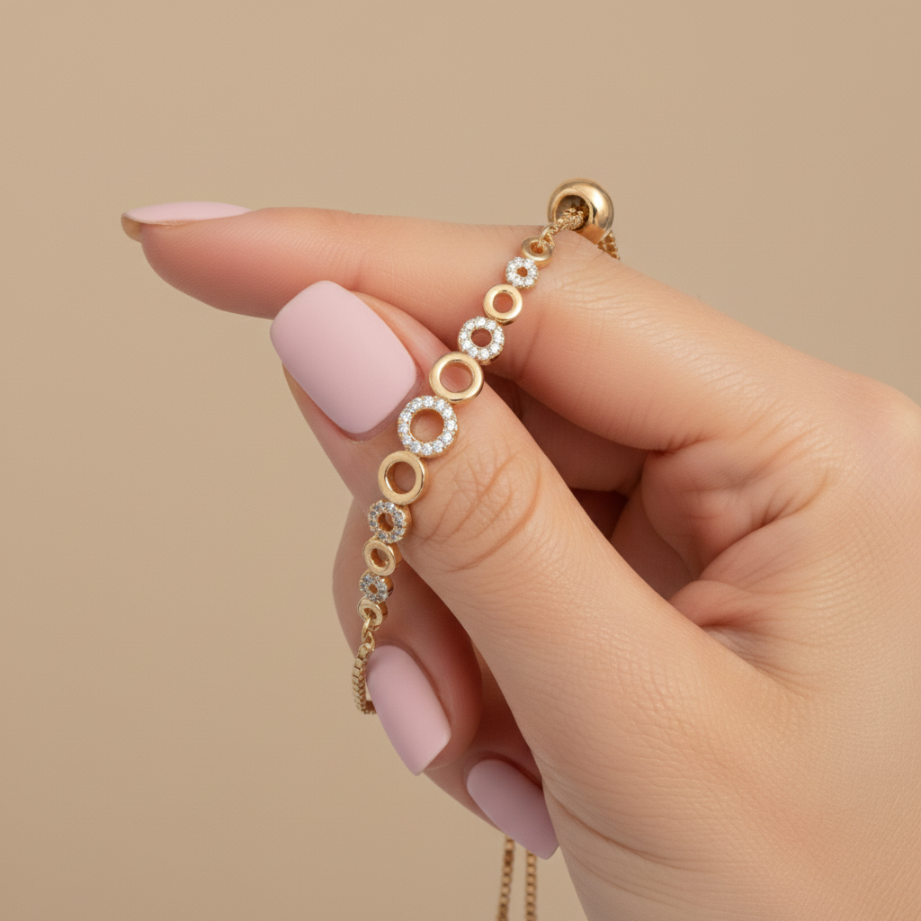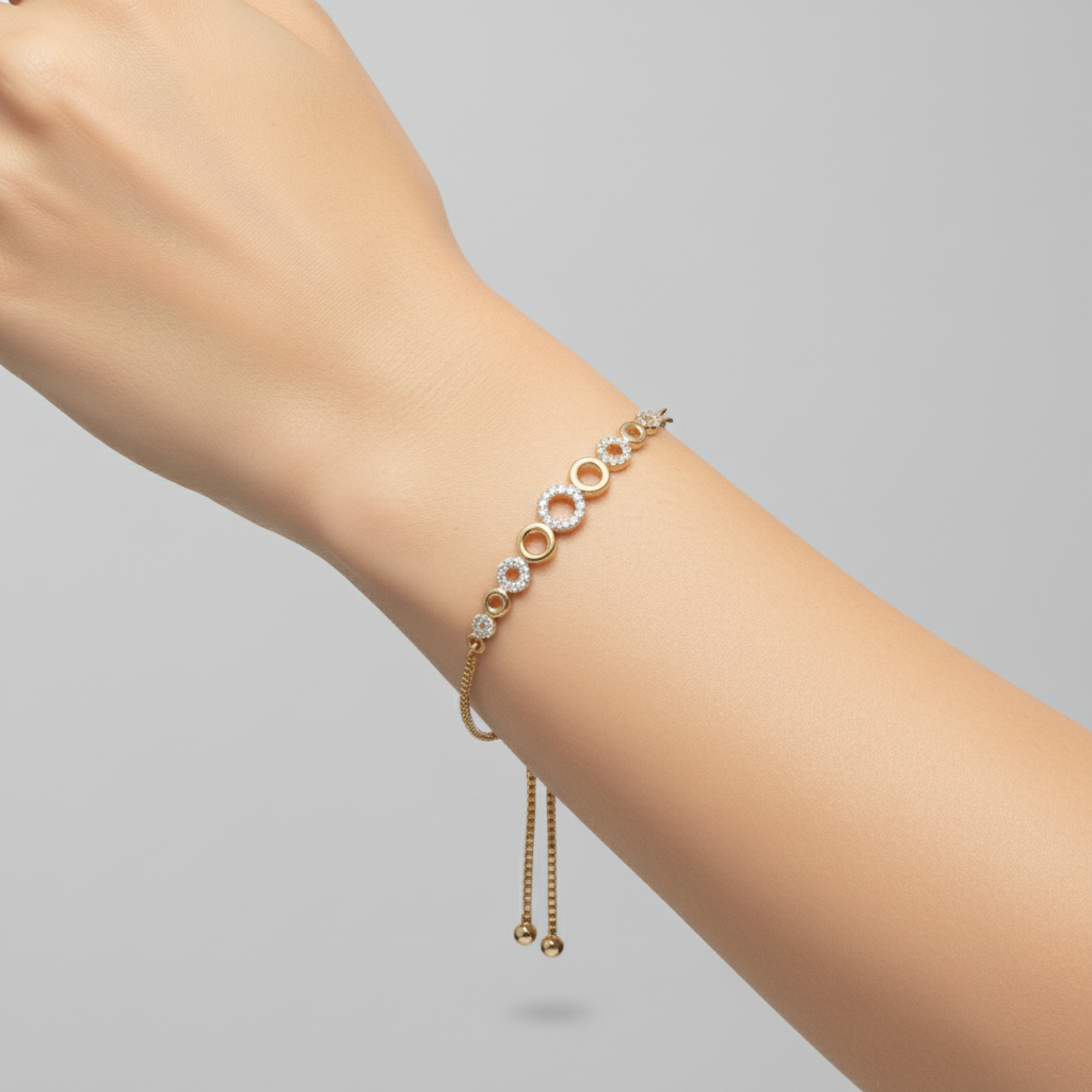 Elevate your style with the Elegant Circle Motif Round Lab Grown Diamond Bracelet from Yana Jewels. Expertly designed for the discerning woman, this bracelet features a 0.32 CT round-cut lab grown diamond that radiates unparalleled brilliance. Set within graceful circular motifs, it symbolizes eternity, balance, and timeless sophistication.