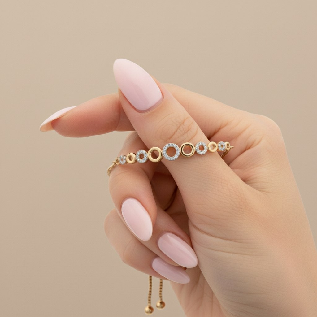 Celebrate understated luxury with this Elegant Circle Motif Moissanite Diamond Bracelet from Yana Jewels. Crafted for the modern woman who values sophistication and meaning, this bracelet features a dazzling 0.32 CT round-cut colorless moissanite, renowned for its exceptional brilliance and fire.