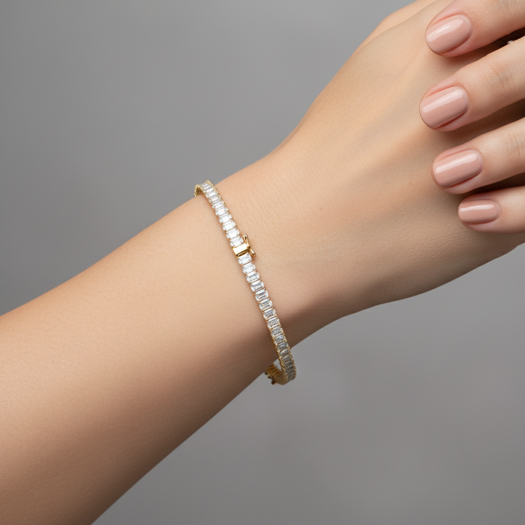 Emerald Cut Moissanite Diamond Tennis Bracelet | Yana