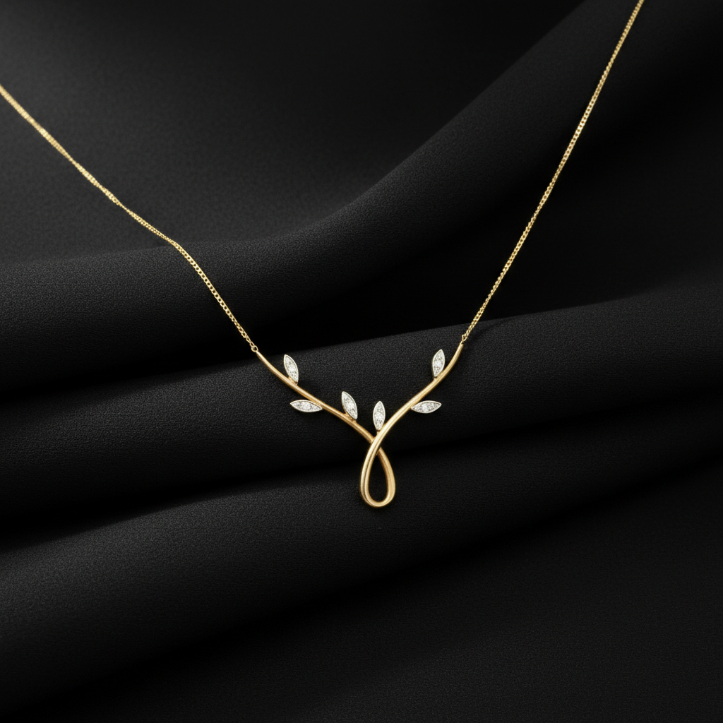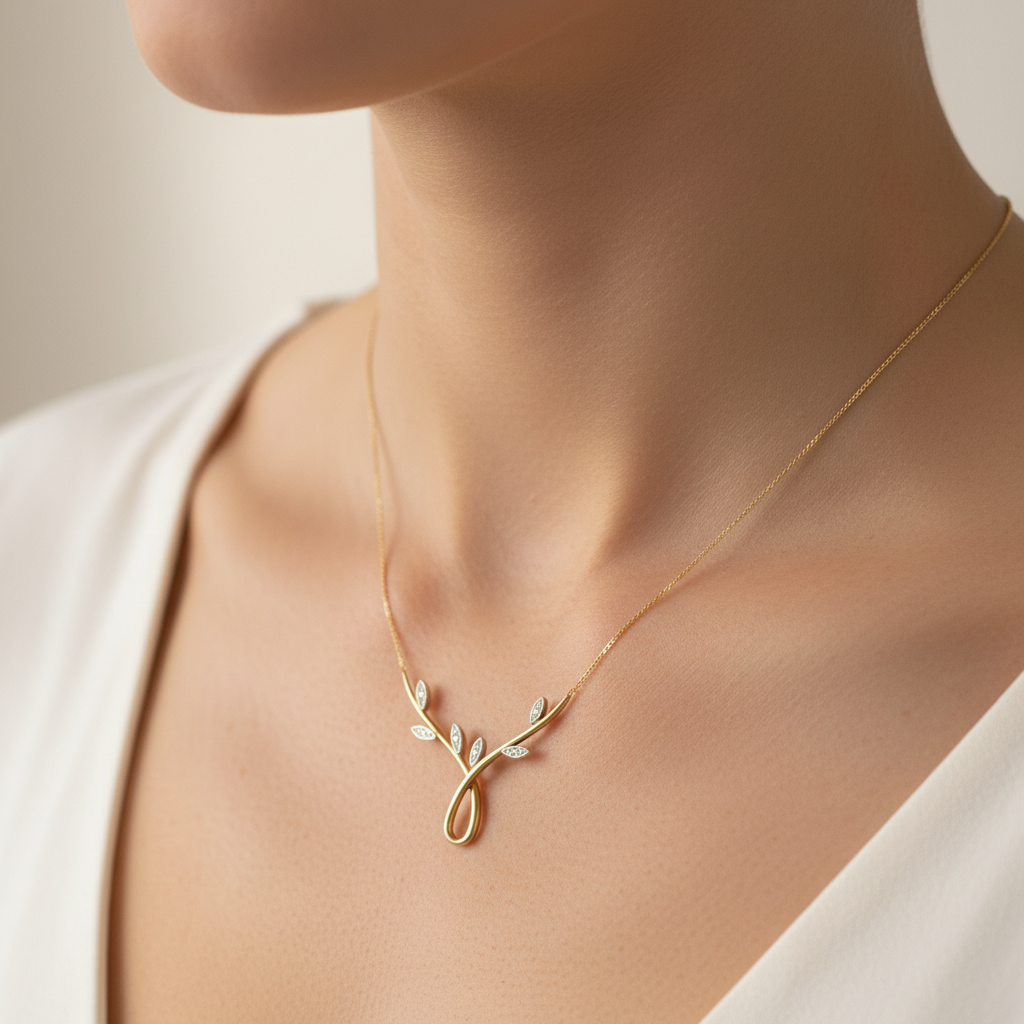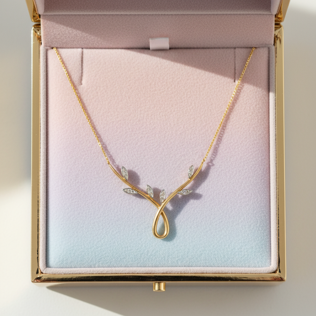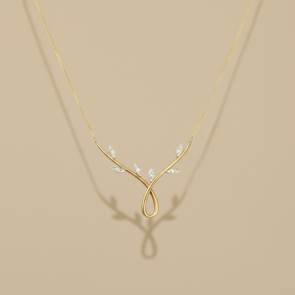 Celebrate everlasting elegance with the Eternal Leaf Twist Lab Grown Diamond Necklace, a design inspired by nature’s flowing beauty and refined femininity. The gentle twist of golden leaves creates a graceful silhouette that rests delicately along the neckline, offering a look that feels both organic and luxuriously modern.