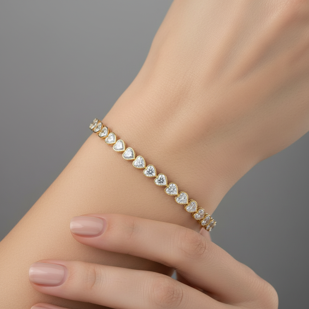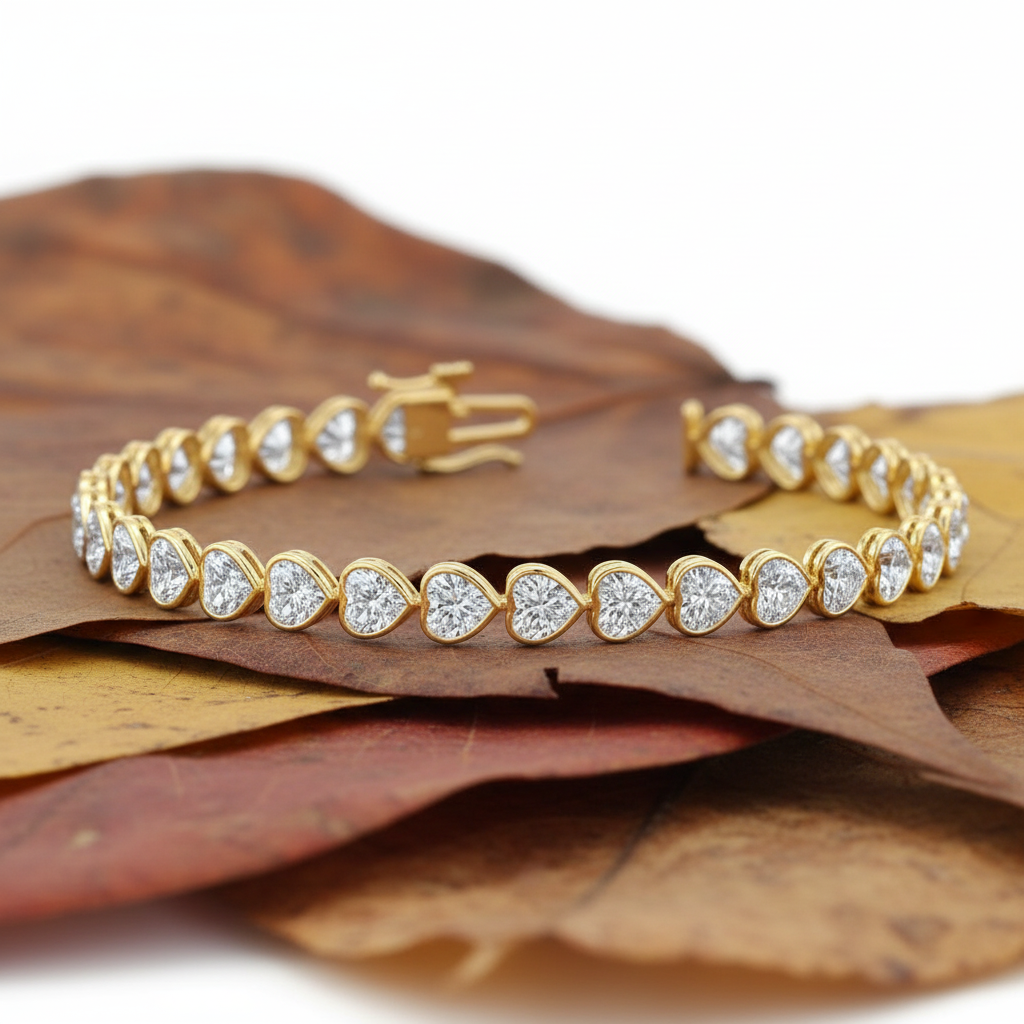 Heart Shaped Lab Grown Diamond Bezel Tennis Bracelet
