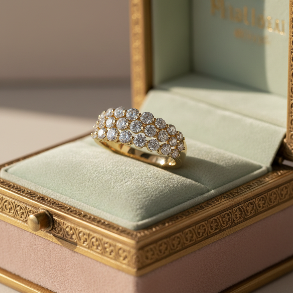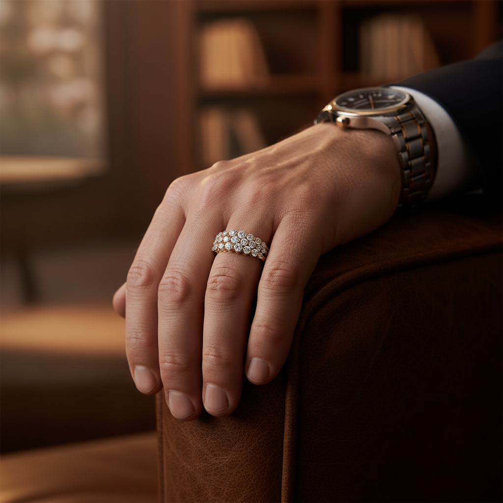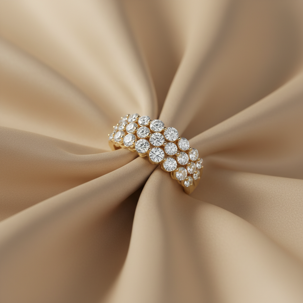 👑 Opulent Statement Band – Rich clustered diamond surface