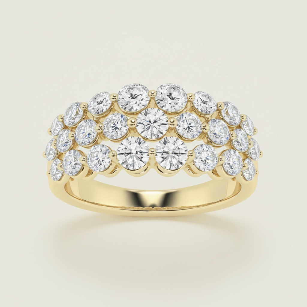 Each VVS diamond is ethically grown and meticulously set to maximize sparkle while maintaining secure, enduring wearability. The softly contoured gold structure enhances comfort and fluid elegance, while the clustered diamond arrangement delivers exceptional fire from every angle.