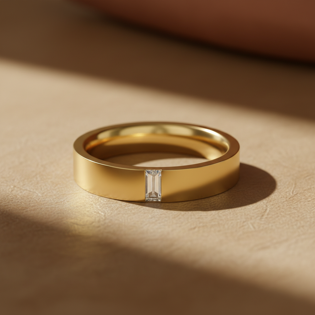 Imperial Edge Baguette Moissanite Diamond Gold Ring