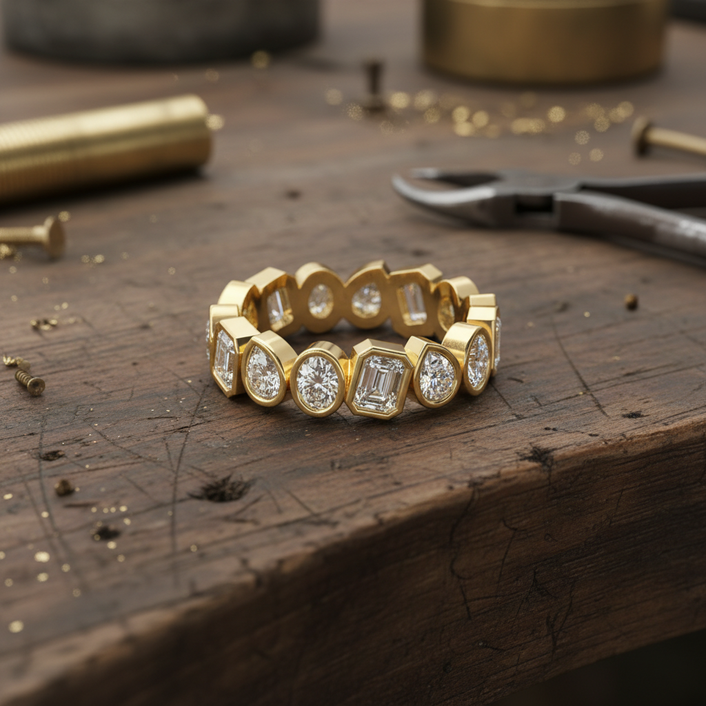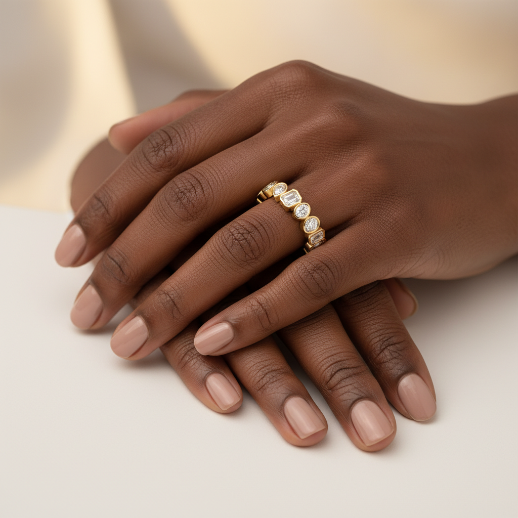 Expertly crafted with meticulous attention to detail, this eternity band offers a smooth, luxurious fit and enduring durability. Whether chosen as a wedding band, anniversary gift, or signature statement ring, it radiates refined sophistication while honoring conscious luxury.