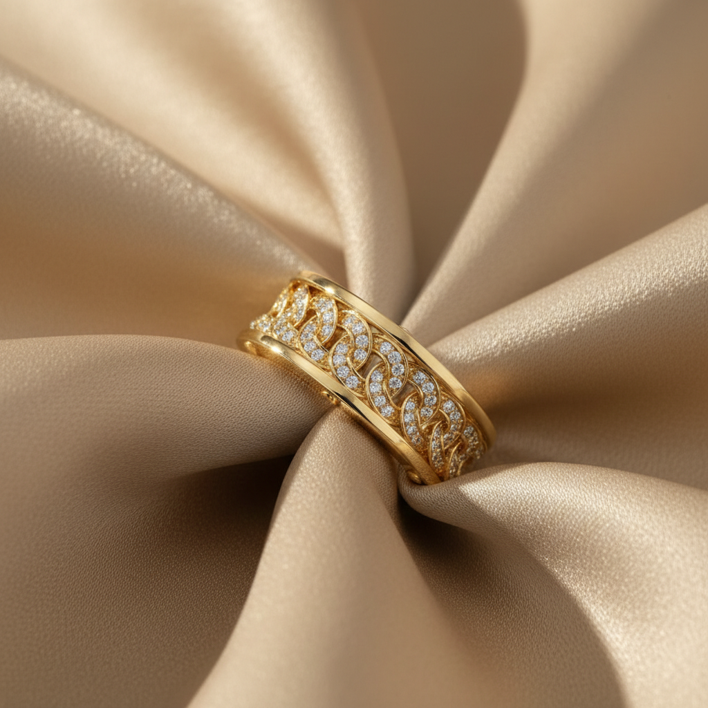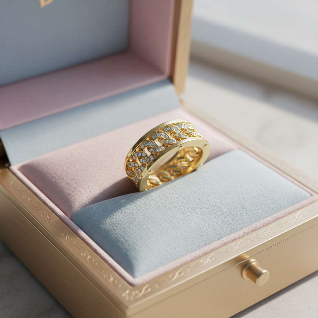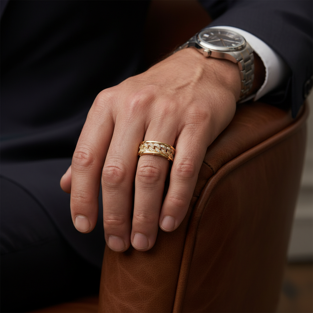 👑 Statement or Wedding Band – Ornate timeless elegance
