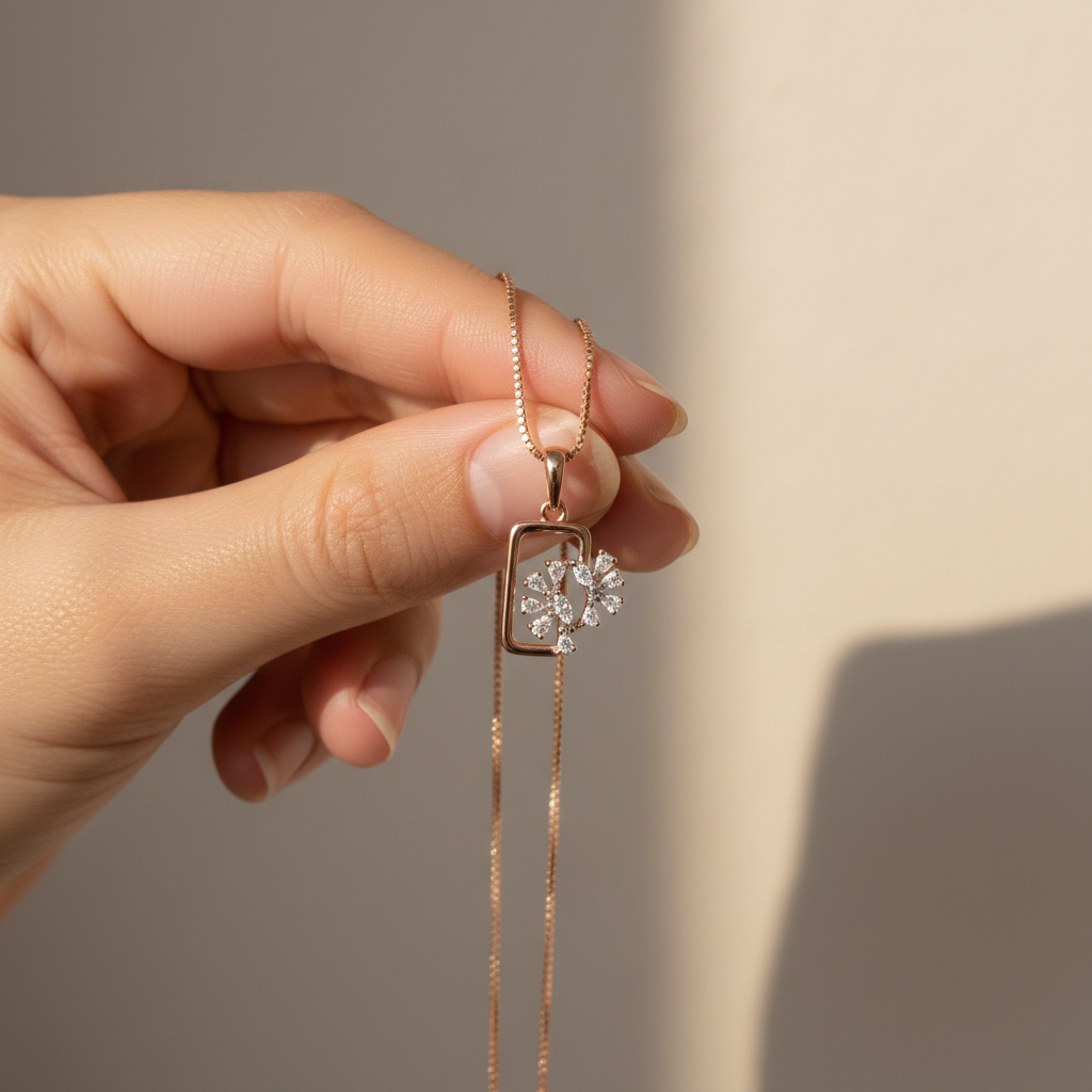 Whether worn as a daily signature or layered for a chic evening look, this necklace speaks of confidence, grace, and elevated taste. It’s more than jewelry it’s a symbol of growth, beauty, and luminous presence.