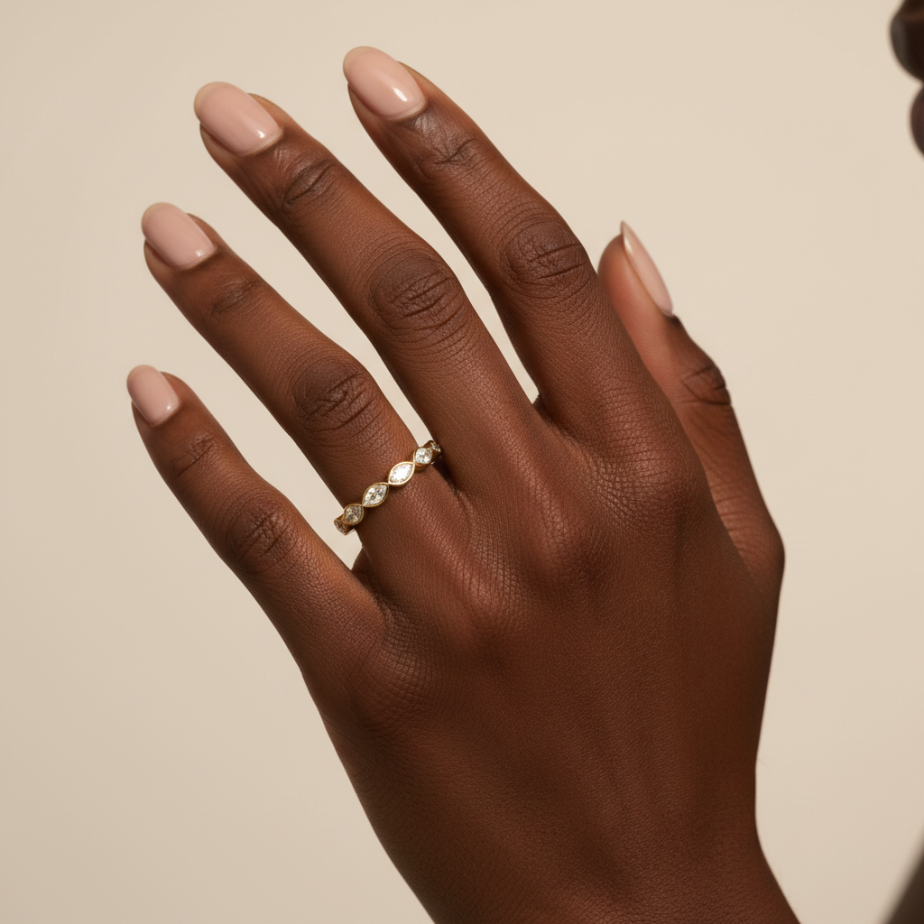 🌙 Half Eternity Design – Balanced sparkle and comfort