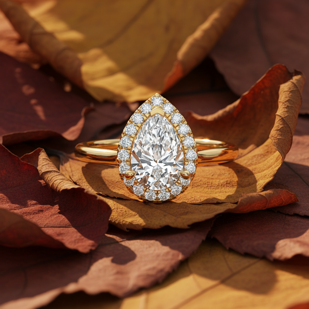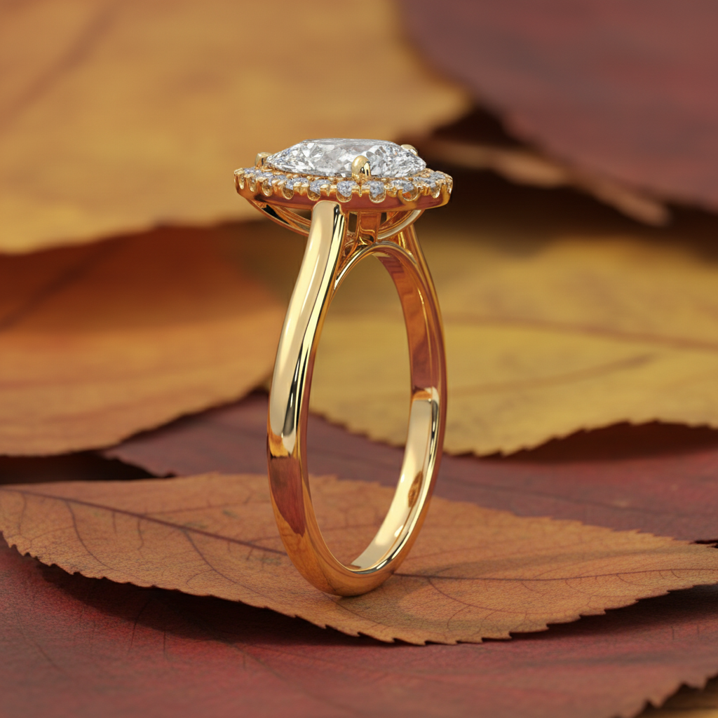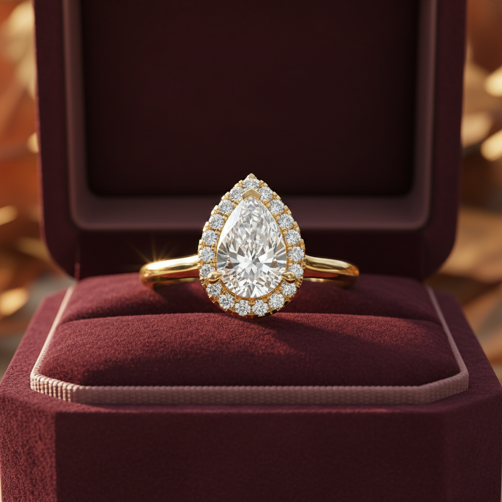 Pear Cut Moissanite Shared Prong Halo Wedding Ring