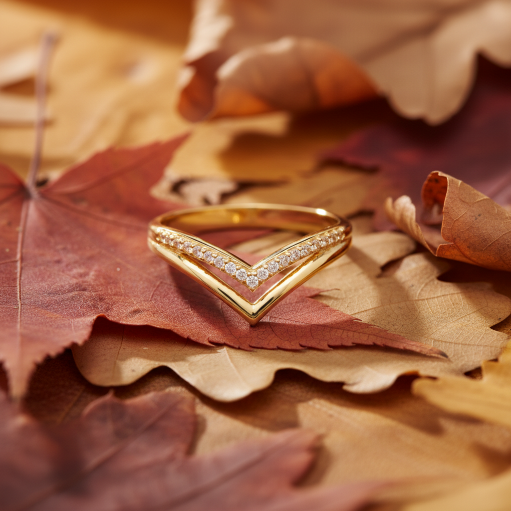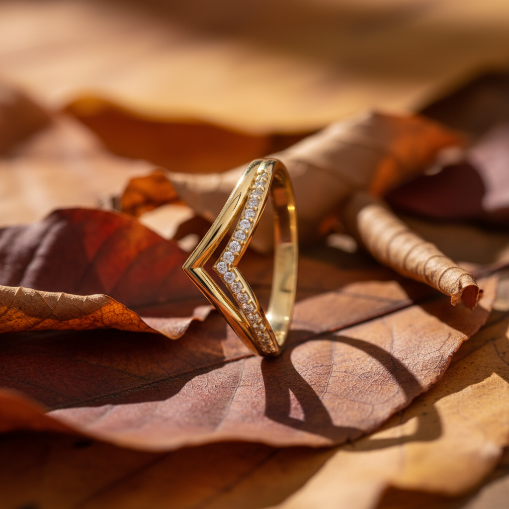 Accented with premium cubic zirconia stones, the elegant V-shaped silhouette adds depth and dimension, making it ideal for stacking with engagement rings or wearing as a chic standalone piece. Designed for comfort and visual balance, it complements both classic and modern styles.