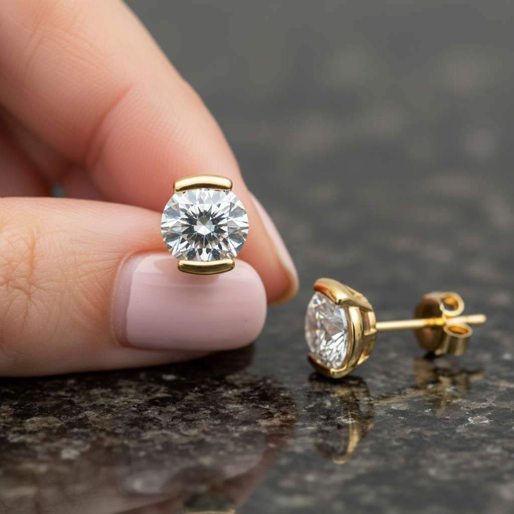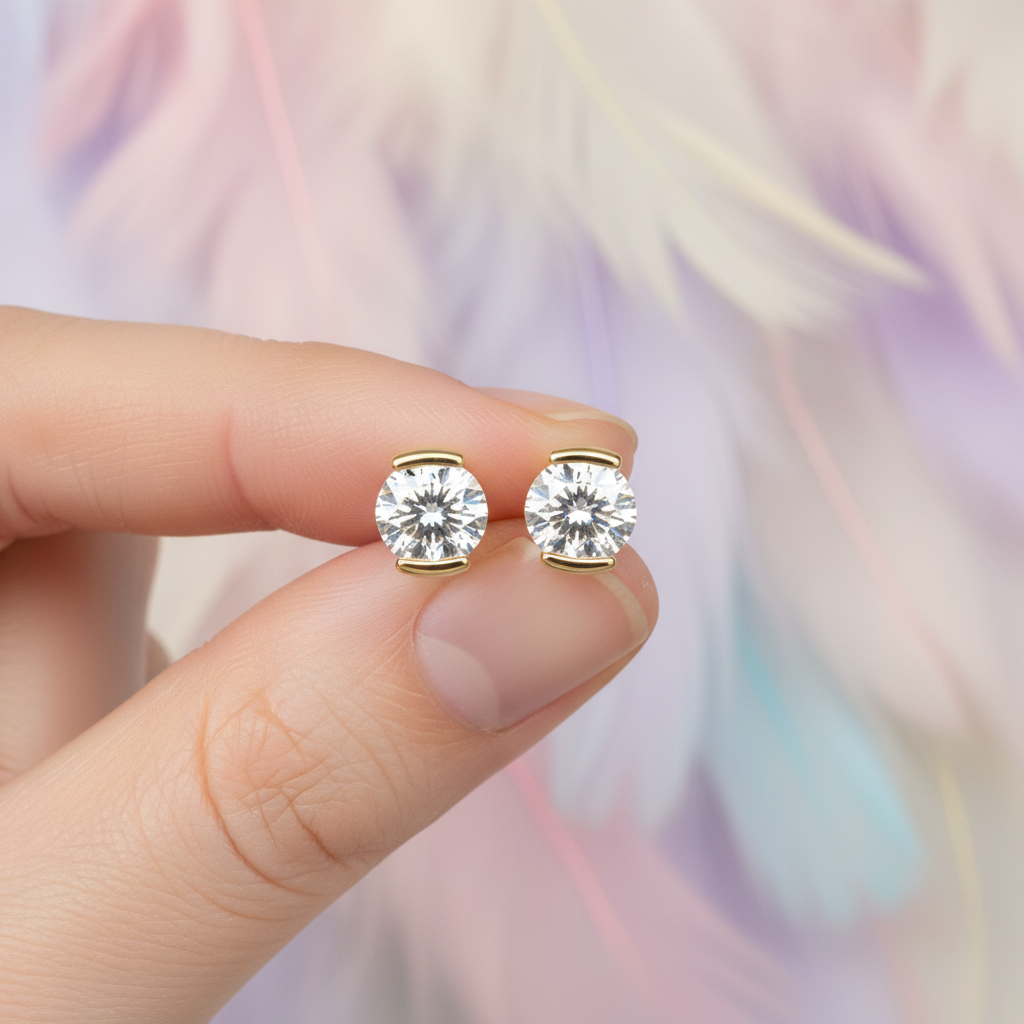 Whether worn as a daily signature piece or for elegant occasions, these sculpted bar moissanite studs deliver radiant beauty and refined style that complements every look.