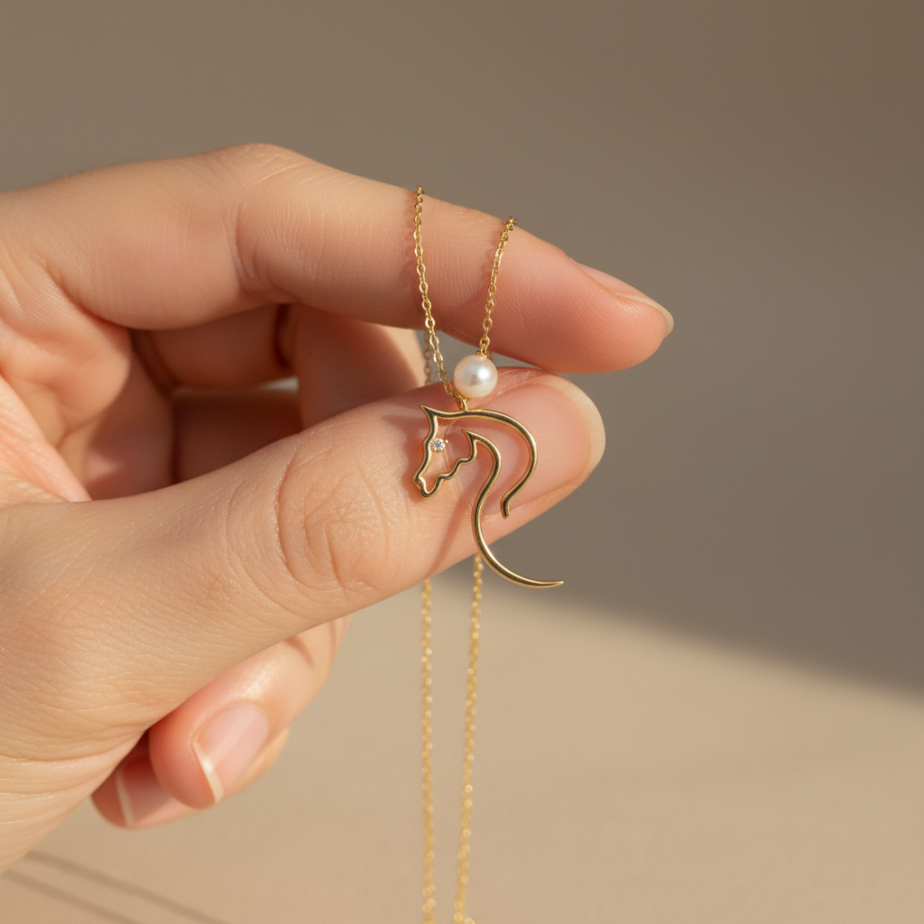 Embody poise, power, and sophistication with the Strength & Grace Horse Lab Grown Diamond Pendant. At its center shines a flawless 0.02 CT round VVS lab-grown diamond, colorless and brilliantly luminous, crafted to perfection for timeless elegance. Inspired by the spirit of the horse, this pendant symbolizes strength, freedom, and refined grace ideal for the modern woman who exudes confidence and style. Expertly designed and ethically created, this piece is a luxurious statement of conscious craftsmanship, sustainable beauty, and enduring quality. Wear it as a personal emblem of empowerment or gift it to someone who embodies elegance and strength.